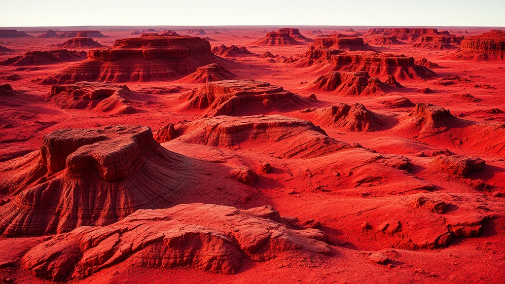 • Hormuz Island transformed into a vibrant crimson landscape.