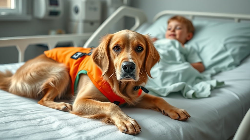 A facility dog is a specially trained canine that works in medical institutions to provide emotional support to hospitalized children and their families.